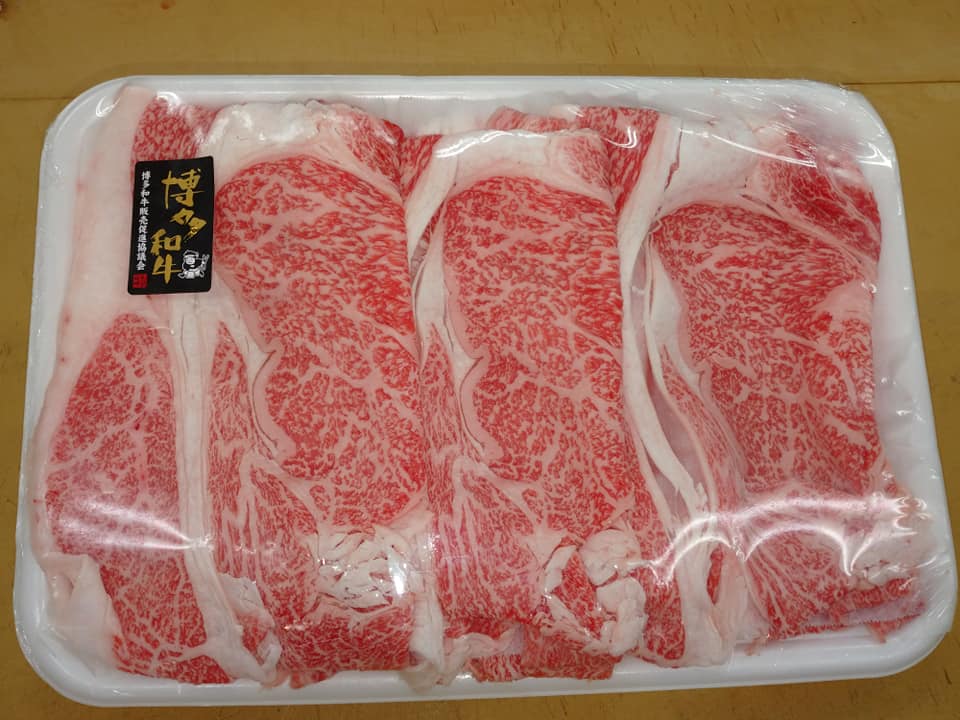 博多和牛すき焼き用、国産生牛小腸入荷しました。本日お肉売り出ししております。
